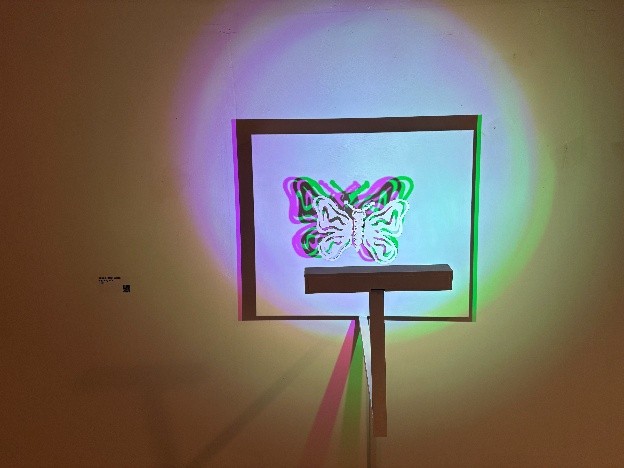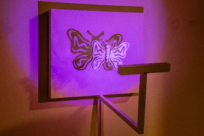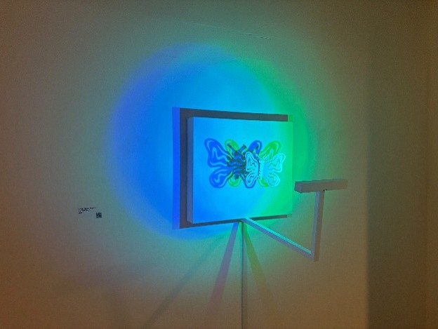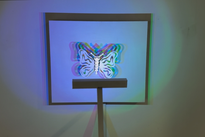 이 작품은 빛나는 캔버스 앞에서 기계적인 날개를 펼치는 나비의 키네틱 조각을 통해 전통과 기술 사이의 대화를 탐구합니다. 미니멀리스트적인 흰색에 잉크처럼 윤곽이 그려진 나비는 전통 공예와 자연을 지속적인 연속성의 상징으로 표현합니다. 정밀하게 제어된 색채의 조명은 캔버스에 변화하는 그림자를 투사하여 3차원의 움직임을 2차원 그림으로 변형합니다. 나비는 평면적인 그림을, 빛은 살아있는 그림을 모방하며, 기존의 예상을 뒤집습니다. 이처럼 서로 겹치고 색깔이 다른 그림자는 다양한 지각 가능성을 불러일으키며, 하나의 형태가 어떻게 다양한 해석을 불러일으킬 수 있는지 보여줍니다. 이러한 반전은 지각에 도전합니다. 물리적 대상은 여전히 창백하고 절제된 반면, 그림자는 생생하고 생동감 있게 변합니다.