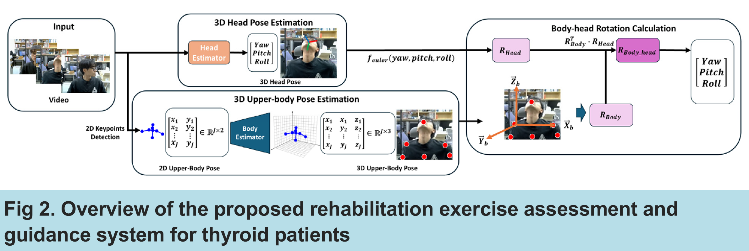 본 프로젝트는 국내 갑상선암 발생률이 증가함에 따라 수술 후 목 재활운동이 점점 더 중요해지고 있습니다. 하지만 통증과 실시간 모니터링 부족으로 인해 의사가 제시하는 운동을 따르지 못하는 환자가 많아 회복이 지연되는 경우가 많습니다. 이를 해결하기 위해 3D Head and Body Pose Estimation을 이용해 재활운동 자세를 정량적으로 평가하고 실시간 피드백을 제공하는 AI 기반 시스템을 제안합니다. 또한 메타버스 기반 환경을 통합하여 환자가 병원을 방문하지 않고도 원격으로 재활운동을 할 수 있도록 했습니다.