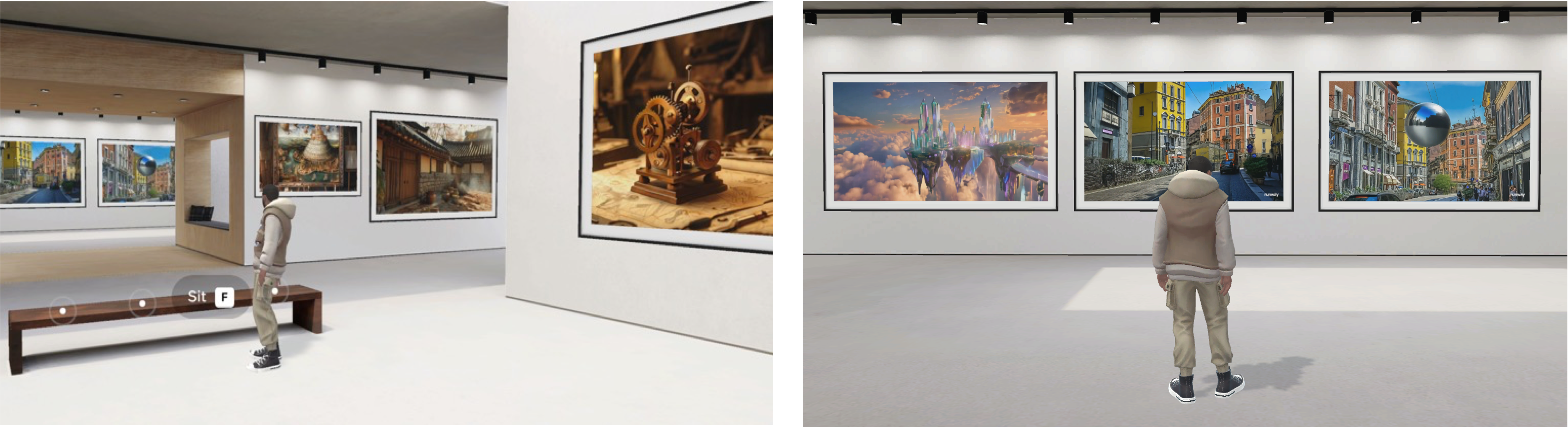 본 프로젝트는 메타버스를 활용하여 기존의 시공간적 제약을 극복하는 관객 참여형 공공미술 전시 플랫폼을 구축합니다. 관객이 수동적인 감상자에서 능동적인 참여자로 변화할 수 있는 예술적 경험을 제공합니다. 또한 메타버스를 통해 예술적 표현과 관람 방식을 확장하는 새로운 형태의 전시를 제안합니다. AI 툴을 활용하여 2D 작품을 메타버스 공간으로 확장시킴으로써 기존의 평면적 작품을 3D 공간에서 입체적으로 재해석합니다. 이를 통해 기술과 예술의 융합 가능성을 탐구합니다.