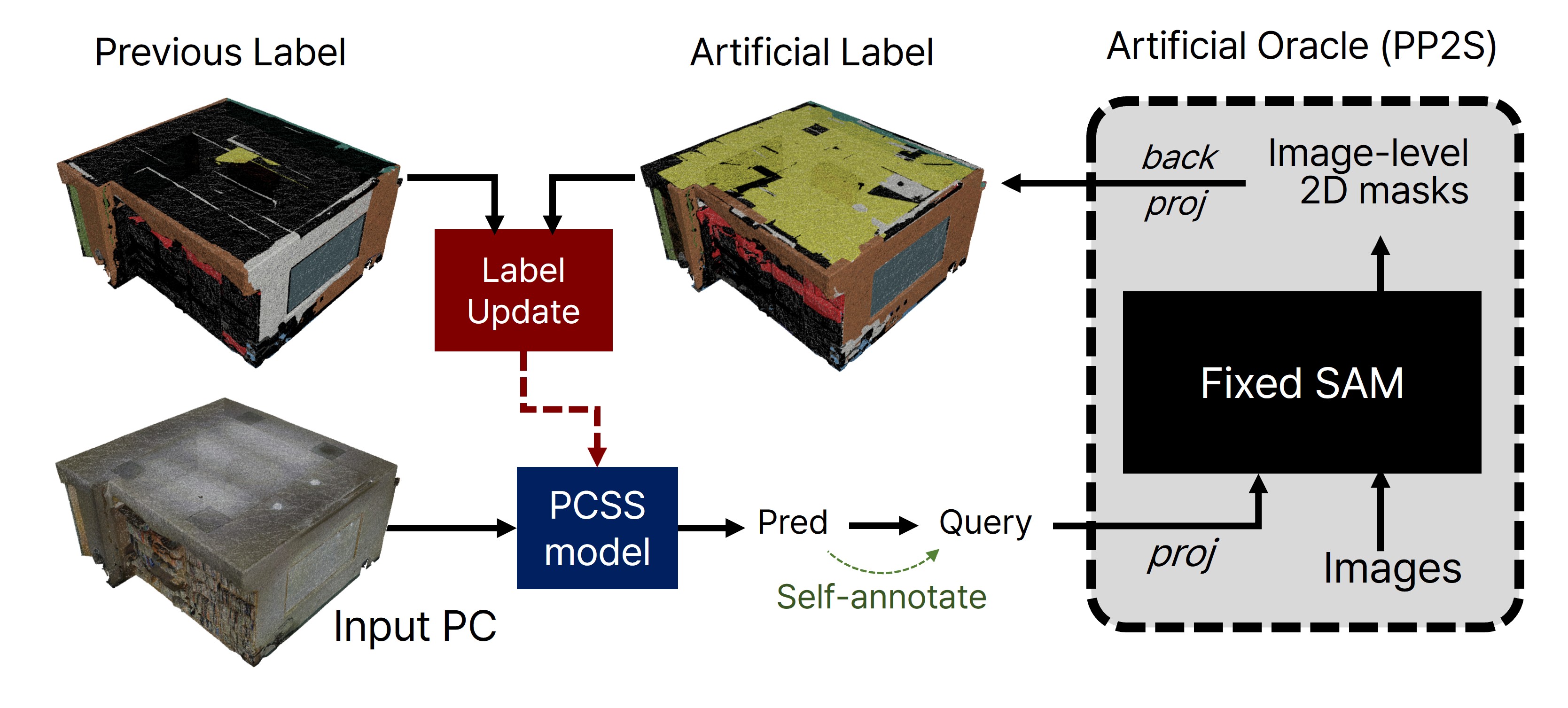 Manual annotation of every point in a point cloud is a costly and labor-intensive process. While weakly supervised point cloud semantic segmentation (WSPCSS) with sparse annotation shows promise, the limited information from initial sparse labels can place an upper bound on performance. As a new research direction for WSPCSS, we propose a novel Region Exploration via Artificial Labeling (REAL) framework. It leverages a foundational image model as an artificial oracle within the active learning context, eliminating the need for manual annotation by a human oracle. To integrate the 2D model into the 3D domain, we first introduce a Projection-based Point-to- Segment (PP2S) module, designed to enable prompt segmentation of 3D data without additional training. The REAL framework samples query points based on model predictions and requests annotations from PP2S, dynamically refining labels and improving model training. Furthermore, to overcome several challenges of employing an artificial model as an oracle, we formulate effective query sampling and label updating strategies. Our comprehensive experiments and comparisons demonstrate that the REAL framework significantly outperforms existing methods across various benchmarks.
