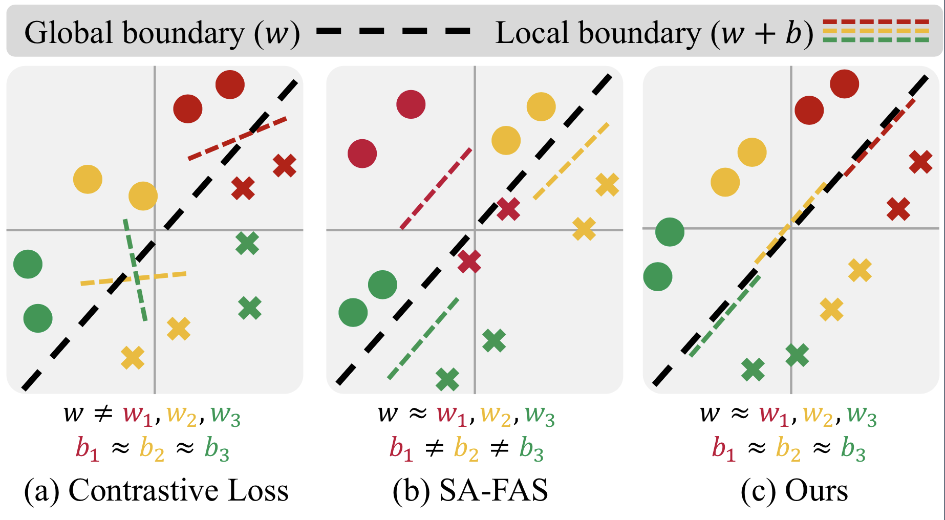 Domain Generalizable Face Anti-Spoofing (DGFAS) methods effectively capture domain-invariant features by aligning the directions (weights) of local decision boundaries across domains. However, the bias terms associated with these boundaries remain misaligned, leading to inconsistent classification thresholds and degraded performance on unseen target domains. To address this issue, we propose a novel DGFAS framework that jointly aligns weights and biases through Feature Orthogonal Decomposition (FOD) and Group-wise Scaling Risk Minimization (GS-RM). Specifically, GS-RM facilitates bias alignment by balancing group-wise losses across multiple domains. FOD employs the Gram-Schmidt orthogonalization process to decompose the feature space explicitly into domain-invariant and domain-specific subspaces. By enforcing orthogonality between domain-specific and domain-invariant features during training using domain labels, FOD ensures effective weight alignment across domains without negatively impacting bias alignment. Additionally, we introduce Expected Calibration Error (ECE) as a novel evaluation metric for quantitatively assessing the effectiveness of our method in aligning bias terms across domains. Extensive experiments on benchmark datasets demonstrate that our approach achieves state-of-the-art performance, consistently improving accuracy, reducing bias misalignment, and enhancing generalization stability on unseen target domains.
