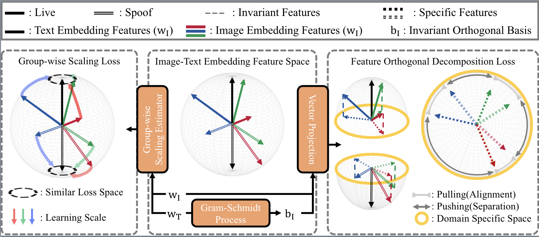 Group-wise Scaling and Orthogonal Decomposition for Domain-invariant Feature Extraction in Face Anti-Spoofing